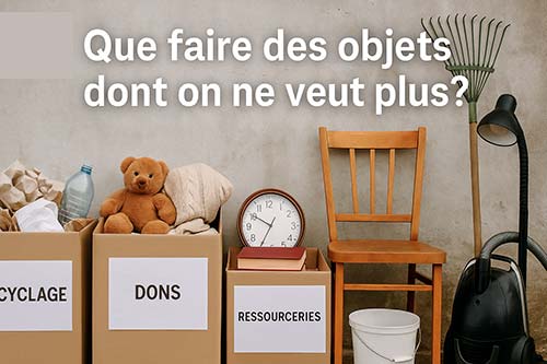 Vider un placard, trier un grenier, alléger une cave ou préparer un déménagement crée souvent la même pile d’objets hétéroclites : vêtements jamais portés, appareils qui dorment, jouets incomplets, vaisselle en double, cartons de papiers, meubles bancals, câbles sans origine, bibelots hérités, outils oubliés, livres, cartons de souvenirs. On croit parfois que la seule option est de tout mettre dans un sac et de jeter, puis on se retrouve bloqué face à des questions très concrètes : où déposer tel appareil, est-ce que ce produit est dangereux, est-ce qu’un meuble abîmé peut encore servir, comment donner sans se compliquer la vie, comment recycler sans faire d’erreur, comment éviter que des objets encore utiles finissent détruits. Ce guide a été conçu pour aider à décider vite et bien, avec des règles simples, des repères fiables et des gestes faciles à appliquer chez soi.